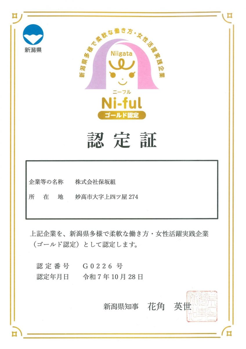 このたび当社は、新潟県が推進する Ni-ful(ニーフル) の認定を取得いたしました。